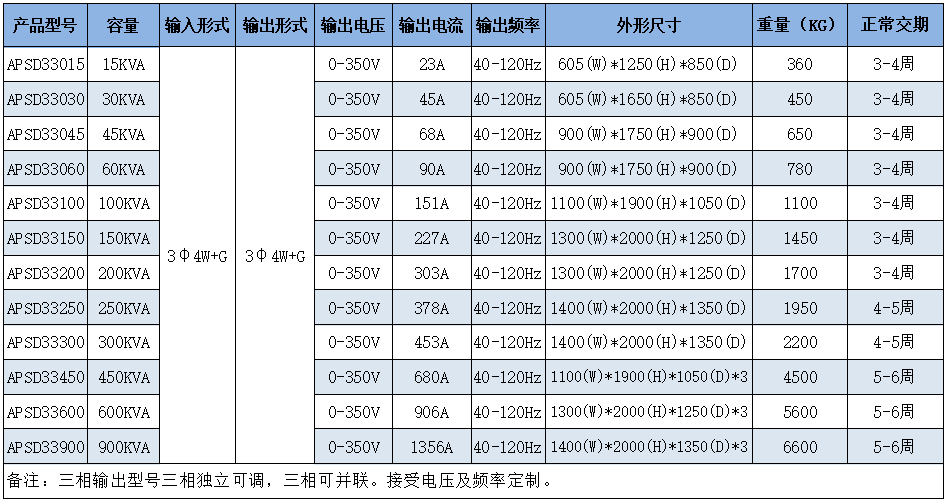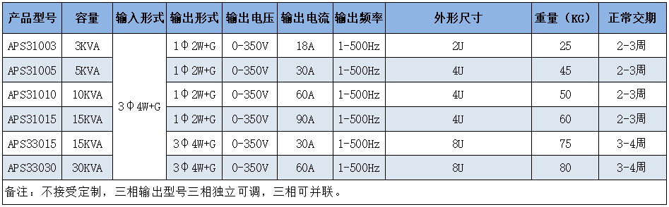 | APS系列回馈式电网模拟器参数 |
